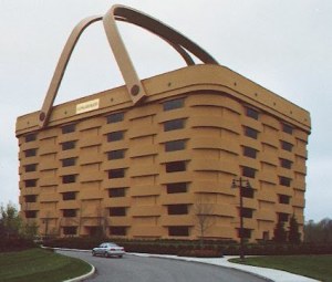 The basket is a 160x replica of Longaberger’s Medium Market Basket and is used as the Longaberger company headquarters. Between Palm Sunday and Easter Sunday large replica eggs are added to the top of the basket.