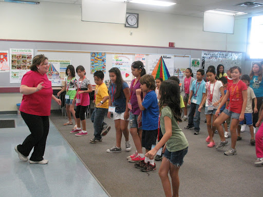 My newfound FAME, in the Pasadena Star News led to an opportunity to teach at a kids health camp in Duarte last week.  I led a 45-minute exercise class with about 25 young kids in it.  Was it ever a blast!  The kids were excited and enthusiastic about trying something new.  We did “dance around the world” with songs from Africa, Spain, Ireland, India, France and China.  We didn’t talk much about exercise and we certainly didn’t talk about thinning our thighs.  Some of the kids were genuinely surprised when I used the word “fat”.  There were a few snickers and giggles, but mostly the kids just got down to the business of having a really good time.