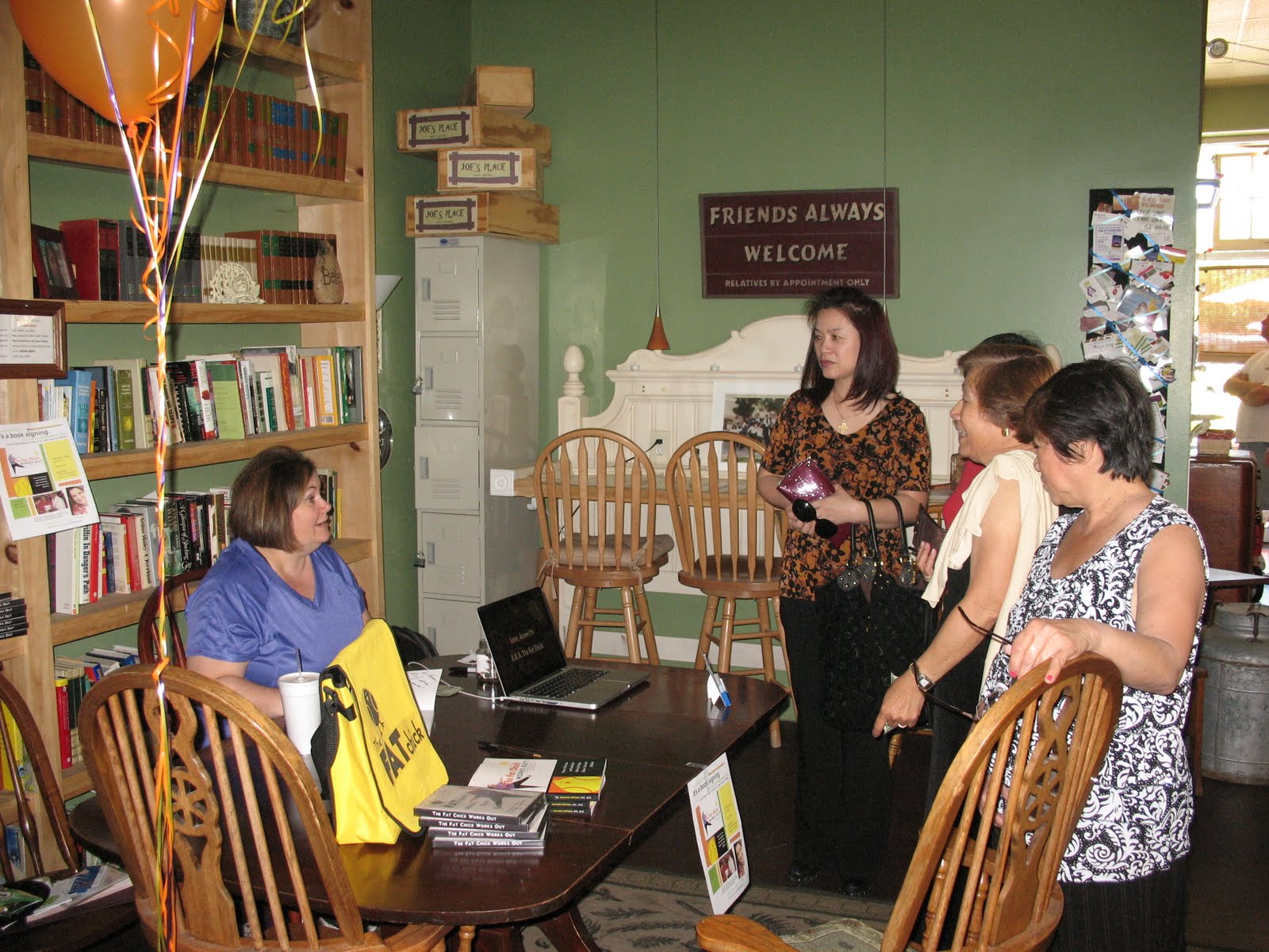 I hosted the book signing today at my favorite coffee shop–Joe’s Place. I sat right in MY chair. The very chair where I spend many hours, days and weeks with my trusty Mac laptop and an extra large, black, decaf coffee. Many of my students and dear friends came by to get an autographed copy. They were thrilled for me. And their excitement allowed it to soak in. I’m no longer considering the concept of thinking about maybe someday writing a book. I WROTE the blessed thing. I have a copy in my hand. I’ve crossed over to the long dreamed of moment where, sharpie in hand I’ve signed my name on the inside front cover and become an author. And the balmy moist breezes blew over the watering hole and I said, Ahhhhhh.