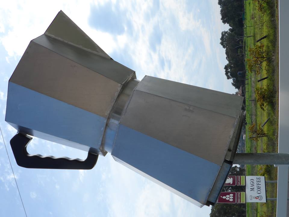 Might the big espresso maker (also called a cafetiere) be one of Australia’s Big Things? http://en.wikipedia.org/wiki/Australia%27s_big_things – though it is not listed here. It’s really cool!